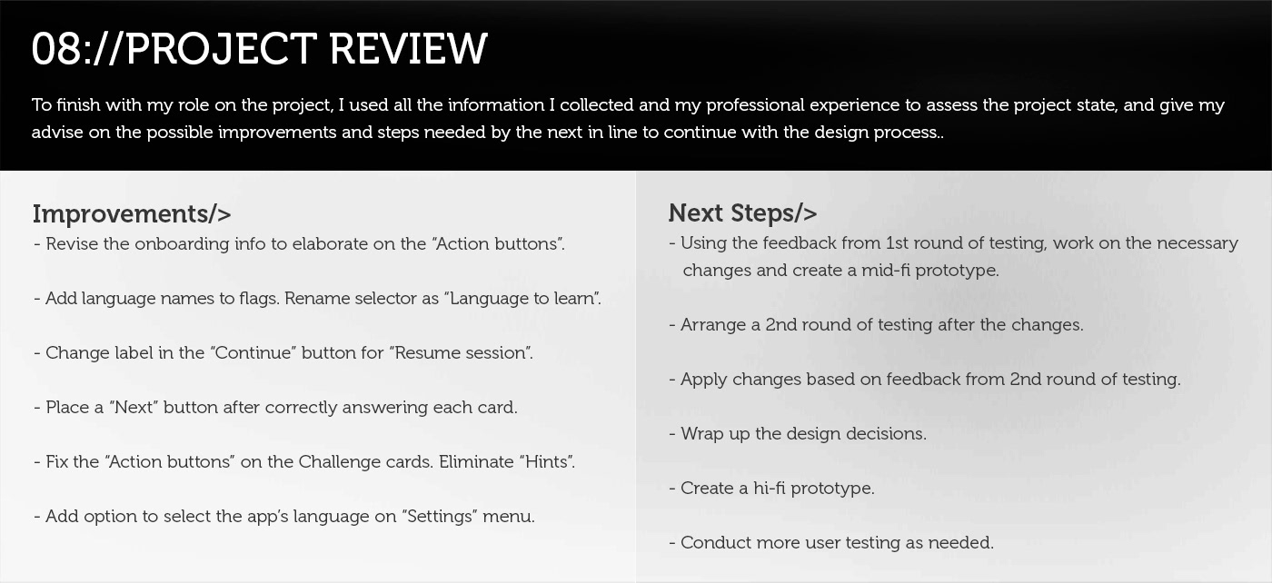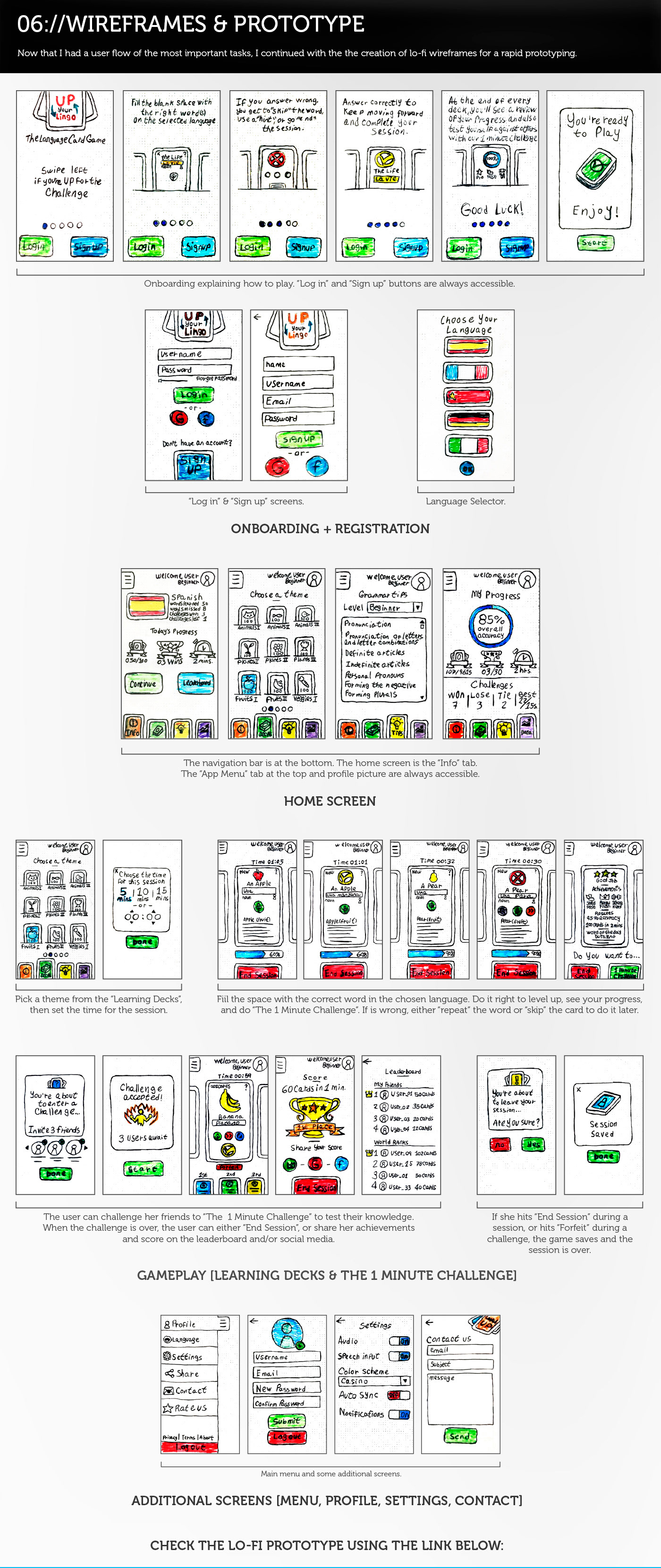 UX case study for CareerFoundry's UXD Certification Course about a language learning app called "UP your Lingo" where users can learn a new language in a fun and easy way through a card game and by challenging others to test their knowledge.